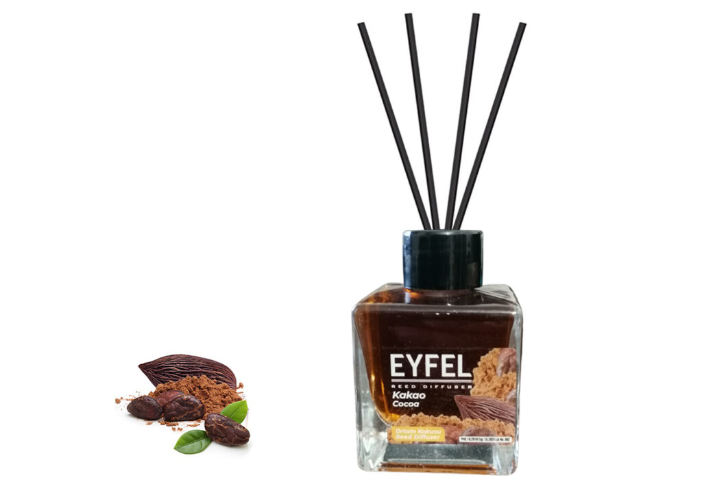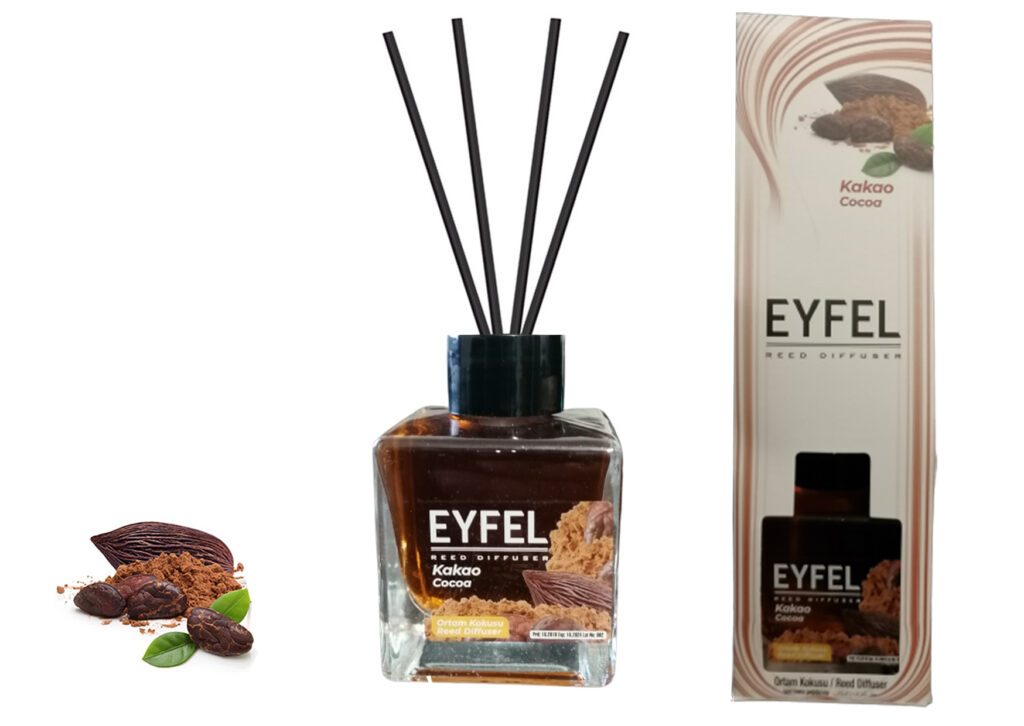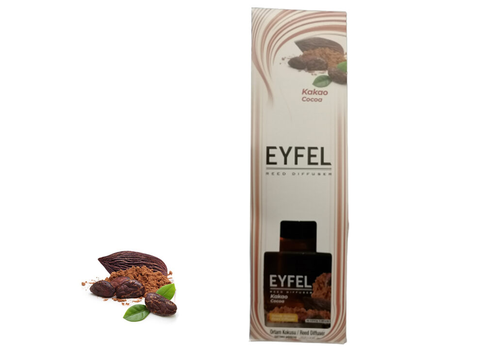 Odorizant camera Eyfel 120 ml Aroma Cacao Creând un sentiment de fericire atunci când este consumat, cacao este acum cu tine în fiecare moment, iar aceastÄ aromÄ magnificÄ se alÄturÄ familiei de odorizante de camera Eyfel pentru a insufla fericire Èi energie în mediul tÄu.Mod de folosire:- Inlaturati capacul si scoateti dopul de plastic.- Dupa aceea puneti capacul din nou la loc.- Introduceti betisoarele de ratan, care dupa ce absorb parfumul vor umple cu aroma eleganta fiecare incapere.- Amplasati flaconul pe o suprafata orizontala care nu este accesibila pentru copii si animale de casa!- La amplasare va rugam sa fiti atenti ca betisoarele sau parfumul sa nu intre in contact cu suprafete lacuite din plastic, fiindca ele pot fi deteriorate.- A se pastra la temperaturi intre 5-30 grade Celsius.- Nu expuneti la lumina directa a soarelui!